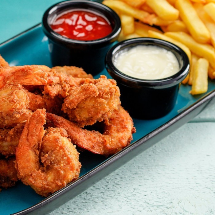 روبيان مقلي مع البطاطس المقليه